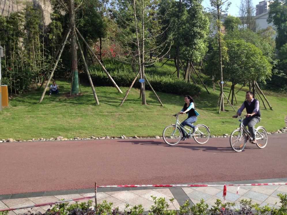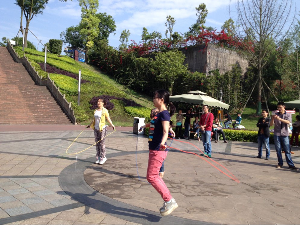 大家踊跃报名参加了跳绳比赛和自行车接力赛,还组织大家进行了有益健康的暴走活动。