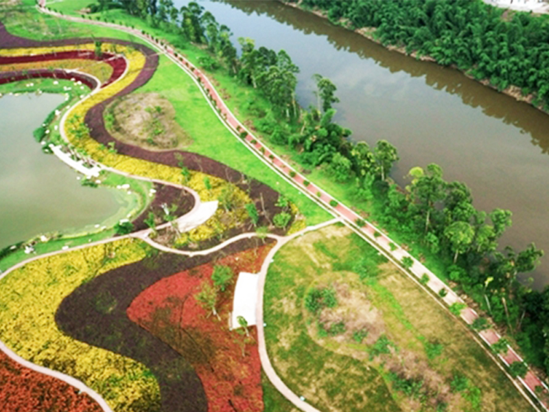 釜溪河复合绿道(示范段)工程位于长江流域沱江一级支流釜溪河右岸,工程起自板仓工业园区,西至东环线,长6.3km,规划面积157.00hm2,其中绿地面积达148.10hm2,于2014年完工。
